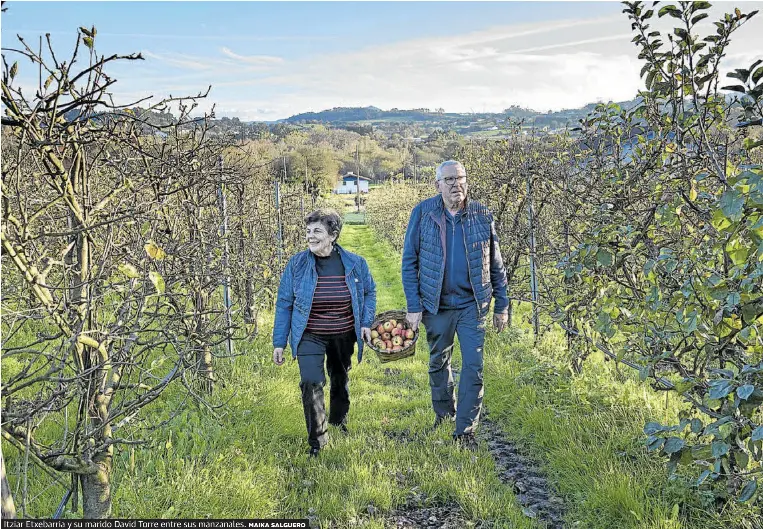 MAIKA SALGUERO. Itziar Etxebarria y su marido David Torre entre sus manzanales.